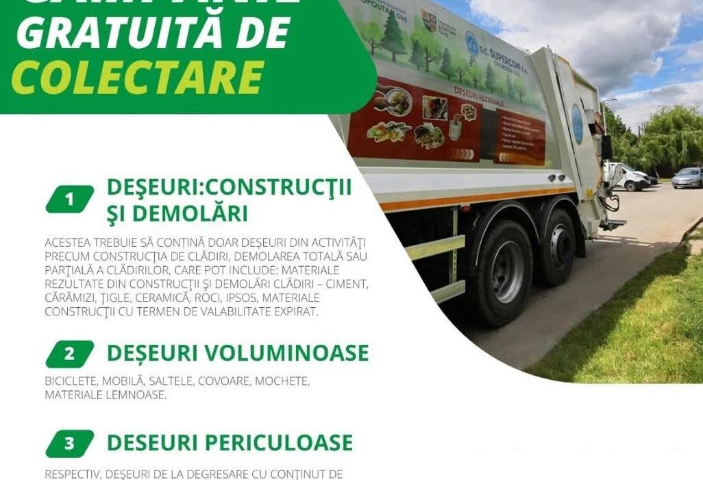Menționăm că această campanie de colectare deșeuri voluminoase este gratuită și nu mai este limitată la 100kg.